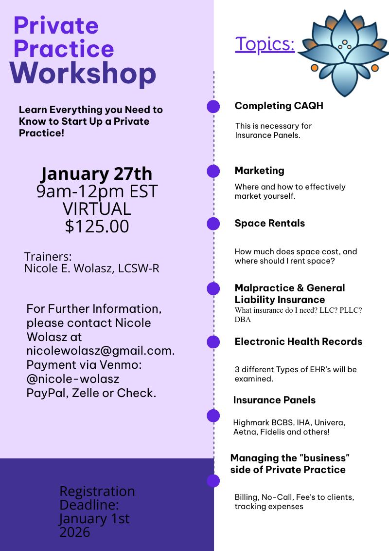 Learn everything you need to know to start up a private practice! Click the brochure for more information.